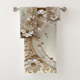 Élégant Ensemble De Serviettes De Bain Verte Gold