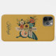 iPhone 11 Pro Max case with pretty, warm yellow and orange flowers on a rustic Christian cross with a colourful green and orange butterfly on a mustard yellow background. Text says, "Faith". Personalized with your name in an elegant script font. Contact me for assistance with your customizations or to request additional matching or coordinating products.