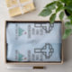 Tissue paper with an inspirational Christian quote which says: Faith Can Move Mountains. Matthew 17:20. With an image of mountains and a cross with a heart.