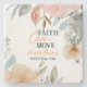 This coaster features a design that showcases a soft, pastel floral motif framing an inspirational quote. At the centre, “Faith Can move mountains” is rendered in a mix of bold uppercase and flowing script, with “Matthew 17:20” delicately placed below. The combination of light, watercolor-style blossoms and elegant typography evokes a calming and uplifting feel. This lovely stone drink coaster is the perfect way to serve up a daily dose of spirituality.