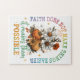 Peaceful, colourful design featuring a fall / autumn scene with pumpkins and fall flowers. The colourful inspirational text reads: "Faith does not make things easier it makes them possible". This design is available on a wide variety of products.