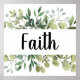 The design features the word Faith nestled inside a bouquet of eucalyptus leaves. Part of the Faith/Hope/Love Set - 1 Corinthians 13:13. Makes a great gift!