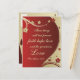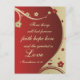Inspirational quote personalized postcard features Bible verse 1 Corinthians 13:13, "These things will last forever faith, hope and love and the greatest is love." The background has flowers and hearts on a dark red and beige swirling design. The greeting on the back can be customized._