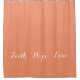 Faith Hope Love Coral Peach Inspirational Shower Curtain with with words Faith. Hope. Love. written in script.