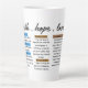 This latte mug is adorned with three powerful words: "faith," "hope," and "love," each accompanied by relevant Bible verses. Under "faith," the verses include Luke 1:37, 2 Corinthians 5:7, and Romans 10:17. For "hope," the verses are Romans 15:13 and Romans 12:12. For "love," the verse is 1 Corinthians 13:4-8. These verses provide spiritual encouragement and guidance, making this design perfect for a latte mug to inspire and uplift you throughout the day. The earthy colour palette and delicate designs create a soothing, reflective atmosphere with every sip.