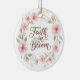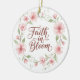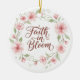 Delicate watercolor pink blossoms frame "Faith in Bloom" in elegant script on this charming round ornament, perfect for adding a touch of inspiration to your holiday tree.