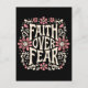 Faith over fear postcard. Bible verse psalm quotes gift idea for faithful Christian girls. Have faith cute floral pink retro groovy aesthetic room decor.