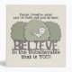 Little Boy is seen in a relaxed pose high in the treetops of the trees illustrating the quote above that reminds us to pause, breathe, pray and let faith put you at ease. The shapes of the trunks of these trees spell out the word, “BELIEVE” and the quote, “in the Unbelievable that is YOU!” below that completes David A. Carrizales’ well-known saying. Drawing is by Christie Black.