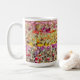The front of this mug features beautiful Tulip flowers blooming abundantly together in a garden meadow. Photograph processed in an artsy style, with Scripture from 1 John 4:19.