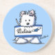 Sandstone coaster featuring West Highland White Terrier dog breed art by children's book Illustrator, Kim Niles.