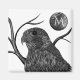Black and white artwork of a peregrine falcon with full moon and tree branches. Use the text template to add an initial or monogram to the moon. ♡ Idyllfire