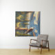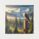This is an illustration that shows a falcon on a pole. The falcon is surrounded by nature with trees, mountain ranges on the background. This tapestry behind your bed is like having the outdoors within your room.