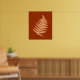 A silhouette drawing of a fern leaf in fall in a light brown color with a dark reddish brown background.