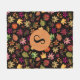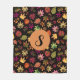 Fall Autumn Leaves Pattern on Black with Monogram Fleece Blanket
