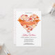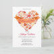 Heart-shaped fall leaves, pumpkins and acorns collage Retirement Party design with fall red and black text on front and a red polka dot and fall floral arrangement in a watering can design on back.