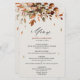 Elegant rustic country fall wedding menu featuring brown, red, orange, green eucalyptus leaves. Please contact me for any help in customization or if you need any other product with this design.