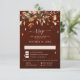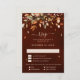 Elegant rustic country fall wedding RSVP card featuring brown, red, orange, green eucalyptus leaves. Please contact me for any help in customization or if you need any other product with this design.