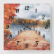 Decorate your home with this lovely fall and autumn trees and lake landscape wall clock. Available in square and circle styles.