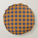 Fall Autumn Orange Blue Plaid Pattern Round Pillow