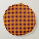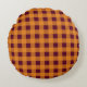 Fall Autumn Orange Burgundy Plaid Pattern Round Pillow