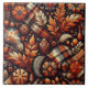 Fall Autumn Plaid Leaves Orange Black Pattern Tile