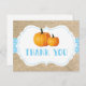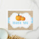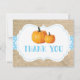 Fall Autumn Pumpkin Blue Burlap Thank You Card