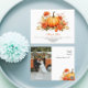 Inspired by the crisp air and vibrant hues of autumn, this postcard design serves as a heartfelt expression of gratitude for your wedding guests. The rustic fall pumpkins and fall florals add a touch of seasonal flair, while the burnt orange and fall colours evoke the cozy ambiance of fall weddings, making it the perfect choice for couples seeking to convey their appreciation with a touch of autumnal charm.
