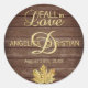 Fall Autumn Rustic Gold FALL IN LOVE Wedding Classic Round Sticker