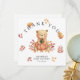 "Thank you". Celebrate with this teddy bear themed baby shower party! Watercolor cute teddy bear with an autumn pumpkin in its paws sits on autumn foliage.