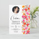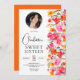 Fall boho red orange floral photo Sweet 16 Invitation
