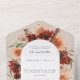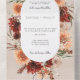 AVAILABLE WITH OR WITHOUT A QR CODE TO SCAN OR WITH OR WITHOUT DINNER OPTIONS. This all in one wedding invitation design features a beautiful fall inspired frame of rust, terracotta, peach, cream, brown and sage green with a white distressed beige background. Perfect for a fall wedding. Created by Simply Farmhouse Press.