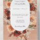 AVAILABLE WITH OR WITHOUT A QR CODE TO SCAN OR WITH OR WITHOUT DINNER OPTIONS. This all in one wedding invitation design features a beautiful fall inspired frame of rust, terracotta, peach, cream, brown and sage green with a white distressed terracotta rust background. Perfect for a fall wedding. Created by Simply Farmhouse Press.