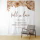 Fall Bridal Shower Backdrop. Transform your bridal shower entrance with the "Fall in Love Autumn Bridal Shower Card Collection." This welcome tapestry showcases beautiful hand-painted watercolor leaves, dahlias, and roses in rich fall colours, creating a warm and inviting atmosphere. The elegant design ensures your event is filled with charm and beauty. Let your bridal shower be an unforgettable celebration of love and autumn's vibrant essence.