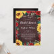 These bridal shower invitations feature a watercolor floral border of sunflowers, red roses and foliage on a wood background with glowing string lights. Personalize them with your own text. Matching products are also available.