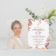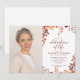 An elegant rustic fall floral funeral personalized celebration of life remembrance photo invitation. Designed by Thisisnotme©