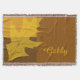 Customize the seasonal Fall Colour Block Throw with a personal name to create a unique keepsake gift. This natural custom autumnal blanket features a golden yellow oak leaf design with a brown tone colour block background. Perfect for a tree hugger.