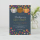 Let us give thanks with a Thanksgiving feast - dinner party invitation from Ricaso - featuring falling leaves in autumn colours and pumpkins on a blue background. Tis the season for gathering, giving thanks, and making memories. Delight your guests with our stunning Thanksgiving dinner invitation adorned in autumn splendour.