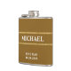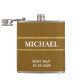 Wedding flask with brown and gold colours and customized name and date. Purchase a flask for all the groomsmen as a wedding party gift. You can customize with groom, groomsmen, best man or make up your own funny message to add to this one of a kind flask.