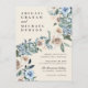 Fall Cream & Blue Watercolor Flowers Wedding Invitation Postcard