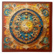 Celebrate the change of seasons with this colourful AI-generated design for the Fall Equinox: Sun and Moon in a yin-yang motif, surrounded by stars and other filigree decoration. The rich vibrant colours and intricate pattern will surely make this the focal point of any setting. Ceramic tiles are so versatile! Slip one under a hot dish to protect the finish of a table or counter. Include as a part of a tiled wall or countertop installation. Or frame and hang as wall art to brighten a cozy corner or a gallery wall. (Framing options are available at checkout.)