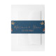 Fall floral bouquet on navy blue wedding invitation belly band.