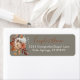 Fall floral bouquet on grey grey with rust wedding invitation return address labels.