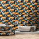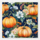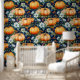 Fall Floral Pumpkin Patch on Dark Blue Wallpaper