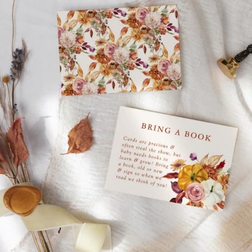 This baby shower design features fall floral in gorgeous deep colours with pumpkins.