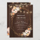 watercolor fall flowers and a geometric frame and a wood string lights background. The design features gold burgundy and blush flowers. The text and colours can be personalized.