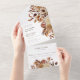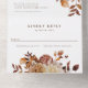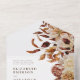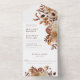 White | Fall Floral Wedding All in One Invitation. This elegant all-in-one wedding invitation features hand-painted watercolor burnt orange, copper, and terracotta leaves, cream and beige dahlias, and beautiful rust-coloured roses on a white background. RSVP is included with this stylish invite. Find matching items in the White Autumn Romance Collection.