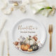These elegant custom party plates feature a Fall floral theme with pumpkins. A watercolor image of four different coloured pumpkins is pictured at the bottom. They're accented with a bouquet of dried flowers in lovely Autumn colours. They're wonderful for a bridal shower, birthday party, wedding, or any other cozy Fall celebration.