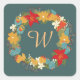 Fall Flowers Monogram Square Stickers, Glossy