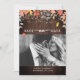 Botanical fall foliage string lights design at top over wood background. Personalize with your own save the date photo.