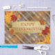 Personalized Thanksgiving tissue paper design featuring leaves and red berries on a autumn coloured plaid background. In the centre of the design there is a gold brushstroke and fully customizable text. To change it use the Personalize option. For more changes, such as changes to the font, font colour or text layout, use the Edit design tool option.